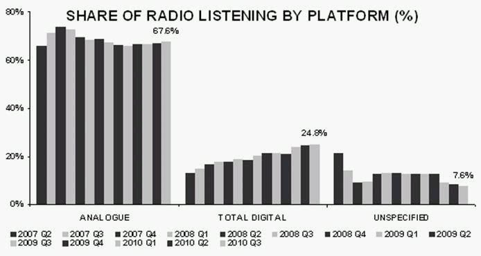 The headlines for all radio listening via platforms in Q3 2010 were: