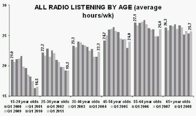 Why does any of this matter? Because radio broadcasters have been progressively losing usage over most of the last decade. Initially, it was 15-24 year olds that were spending less time with radio. Increasingly, it is also 25-34 year olds. For a decade, the UK radio industry has desperately needed a coherent strategy to reverse this loss of listening. The decline in young adult listening to broadcast radio does not merely impact the NOW. If these consumers do not find anything in their youth worth listening to on the radio, they will grow old without the radio habit. Their radio listening patterns NOW are likely to influence radio listening for the next half-century.