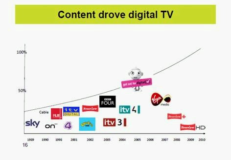 “With television, there existed consumer dissatisfaction with the limited choice of content available from the four or five available analogue terrestrial channels. This was evidenced by consumer willingness to pay subscriptions for exclusive content delivered by satellite. Consumer choice has been extended greatly by the Freeview digital terrestrial channels, many of which are available free, and the required hardware is low-cost.
