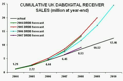 • how slow the rate of growth is of DAB receiver take-up and of digital radio station listening.